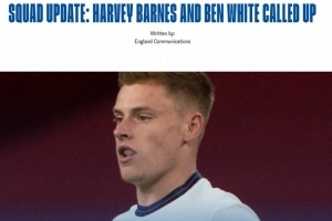 28岁的哈维·巴恩斯此前在2020年代表英格兰队有过1次出场,28岁的本·怀特曾有过4次出场,这也是自2022年入选英格兰世界杯名单后,时隔近4年这名球员重返英格兰队。