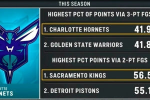 本赛季黄蜂三分命中数占比联盟最多 国王两分命中数占比联盟最多