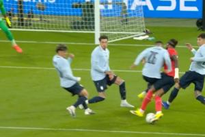 希望无大碍!马杜埃凯被乌拉圭球员撞倒,随后被换下