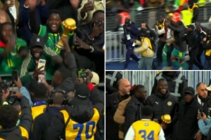 据RMC在现场的报道,塞内加尔中场帕佩·盖耶和球迷们进行了疯狂庆祝。他手持非洲杯奖杯,和看台上的球迷足足互动了十分钟。