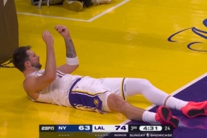 东契奇脸被抓出血痕