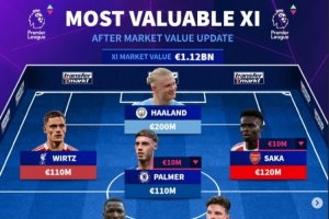 英超身价最贵阵:哈兰德2亿欧领衔 枪手5人曼城3人蓝军2人红军1人