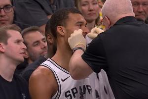GIF-豪泽一巴掌扇到文班脸上,后者下场处理一下伤势
