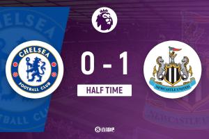 半场结束,切尔西暂0-1纽卡斯尔。