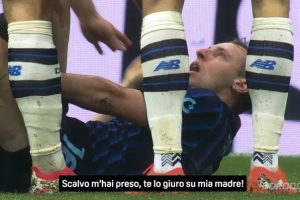 转播方:弗拉泰西用母亲发誓说被斯卡尔维尼踢到,后者却说没踢他